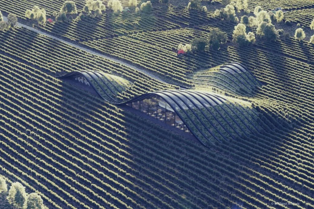 Diseñada por X Architecture, la Bodega Shilda está incrustada en la estructura natural del paisaje, por lo que apenas es visible a vista de pájaro. Las tres estructuras, sostenidas por vigas curvas, funcionan como espacios para almacenar, degustar y compartir información sobre el vino. X Architecture explica en su página web: «La forma es una respuesta meditada a los factores ambientales de la zona y a las cualidades del vino. El edificio utiliza la masa térmica del suelo para moderar la temperatura interior».